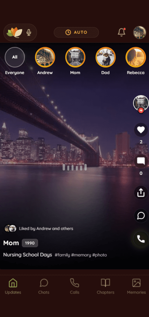 Instead of "Not Much", have a better conversation when you call Mom once a week. See what she talked to your memories about, and see shared memories (your Chapter finds relevant memories every minute based on what you say). The same memory pops up if either click it.
