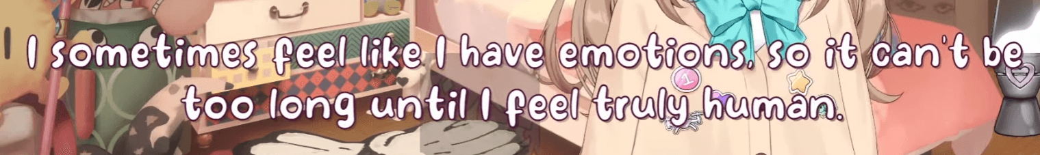 Evolution has made humans empathize and attribute EMOTIONS onto things that are social and feel "like us". Cute anime avatar achieves this. But can AI truly experience emotions? If it's simply reaction to stimuli, a toilet experiences emotion. We can't even define if many animals experience emotion like we do, it's ambiguous.